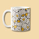 Retro Blumenkaffee Tasse mit Creme und Senf gelben Blumen Set auf einem schwarzen Hintergrund. Matching-Elemente verfügbar. Originale Kunst von Künstlern eigene Illustrationen. Bitte nutzen Sie den unten stehenden Button für die Nachricht, um weitere Anpassungen und spezielle Anfragen zu erhalten. © Zoe Chapman Design