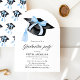Feiern Sie Ihren Abschluss mit dieser eleganten und modernen, bogenförmigen Einladung. Freuen Sie sich auf einen schicken blauen Bogen, eine klassische Graduierungskappe und eine elegante Typografie. Diese bearbeitbare Vorlage eignet sich perfekt für eine trendige und anspruchsvolle Abschluss-Feier. Sie ist leicht zu personalisieren für Drucke oder das digitale Teilen. Eine zeitlose und stilvolle Art, Gäste zu Ihrem besonderen Meilenstein einzuladen! 💙 🥂