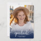 Feiern Sie den Absolventen stilvoll mit dieser schicken und modernen Abschluss-Einladung. Mit einem ganzseitigen Portrait auf der Vorderseite mit eleganter Schrift-Typografie behalte dieses Design es einfach und stilvoll. Der Rücken zeigt eine Collage von drei weiteren Fotos, die sich perfekt für besondere Momente eignen. Mit klaren Linien und einem zeitlosen, weißen Hintergrund ist diese Einladung ideal für Highschool oder Uni-Abschlüsse. Personalisieren Sie die Details, um es einzigartig zu machen! Weiß auf marineblau.