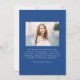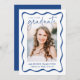 Feiern Sie Ihren Meilenstein mit dieser Ankündigung des Abschlusses "Modern Blue Wavy Frame", der Ihre Leistung stilvoll präsentieren soll. Die Vorderseite weist ein Foto mit vertikaler Graduierung auf, das durch eine fett blaue, wellenförmige Grenze auf einem weißen Hintergrund gerahmt ist, wobei "Graduate" elegant in einem handgeschriebenen blauen Drehbuch geschrieben ist. Personalisieren Sie es mit Ihrem Namen, Abschluss Jahr und Schule für eine einzigartige und unvergessliche Touch. Die Rückseite zeigt ein horizontales Foto mit Platz für eine benutzerdefinierte Nachricht, ideal für die gemeinsame Nutzung Ihrer Wertschätzung oder zukünftiger Pläne. Ideal für Absolventen der Gymnasialschule und Uni, ist dieses moderne und raffinierte Design ein echter Hingucker für Ihre Lieben.