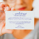 Die in Ihrem Willkommensbeutel oder -korb in der Unterkunft platzierte, in Blau und Weiß gehaltene Willkommenskarte ist eine gute Möglichkeit, um Ihren Gästen aus der Stadt für die Reise zu danken, die sie für Ihre Hochzeit benötigen. Passende Bürobedarf und Party sind vorhanden.