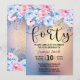 Schöne moderne 40. Geburtstag Einladung. Gestaltungselemente aus Aquarellhintergrund mit goldenem Glitzer und Blumenelementen in Rosa und Blau.