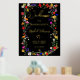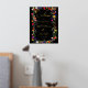 Moderne bohenhafte wilde Blume Böhmisches Brautparty Begrüßungsschild mit echter Goldfolie. Die botanischen Blume in Rosa, Rot, Grün und lila Farbtönen, inspiriert von Wildblumen und rustikalen Aquarellen-Gärten mit subtiler Vegetation und moderner boho-Schrift-Typografie auf dunklem Hintergrund.