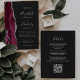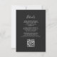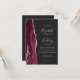 Der links Rand dieser eleganten, modernen Hochzeitseinladung besticht durch einen bordeauxroten, mit silberfarbenem Imitat-Glitzer bestickten Aquarellrand. Der anpassbare Text kombiniert silbergraue Handschrift, Kupferplatte und kursiv Schriftart auf einem schwarzen Hintergrund. Die Rückseite bietet Platz für Hochzeitsdetails auf einem soliden, dunklen Hintergrund, zusammen mit einem QR-Code können Gäste scannen, um Ihre Website und UAWG, die die Kosten für den Druck und Versand separater RSVP-Karten rette.