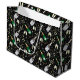 Diese festliche Geschenktasche zeigt niedliche Illustrationen von Champagnerflaschen und Gläsern auf schwarzem Hintergrund mit Gold- und Silberakzenten. Ideal, um Neujahrsgeschenke oder andere Feiern zu tragen.