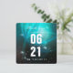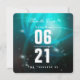 Save the Date Karte für die Hochzeitssuite Deep Sea Aqua. Füllen Sie den Wochentag, den Monat und den Tag in zweistelligen Zahlen aus, und das Jahr, das auf der Vorderseite angegeben ist. Die Namen des Ehepaares gehen auf die Rückseite.