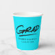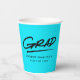 Moderne Abschluss-Papiertassen mit "Grad" in schwarz, handschriftlich mit einem gestrichelten Unterstrich auf einem türkisfarbenen Hintergrund (oder einer beliebigen Farbe). Personalisieren Sie die türkisfarbenen Abschluss Papiertassen, indem Sie den Namen und Abschluss des Absolventen Jahr. Das Design wiederholt sich auf der Rückseite. Die personalisierten Abschluss Papiertassen sind sowohl für Partys der Oberstufe als auch für Uni-Abschluss geeignet!