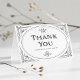Diese elegante Schwarz-Weiß-Dankeschön-Karte besticht durch einen modernen Look auf dem klassischen Deko. Ein verzierter, schwarzer geometrischer Rahmen und eine Verzierung schmücken einen eleganten, weißen Hintergrund für einen dramatischen, altmodischen Hochzeitslook.