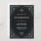 Diese glamourösen Hochzeitseinladungen besticht durch eine moderne Besinnung auf den klassischen Deko. Ein verzierter, weißer geometrischer Rahmen und eine Ornamentierung zieren einen eleganten dunkelonyxen Hintergrund für einen dramatischen, altertümlichen Hochzeitslook. Die Rückseite bietet Platz für zusätzliche Hochzeitsgast-Details, sowie einen scannbaren QR-Code, damit die Gäste online auf Ihrer Hochzeitswebsite reagieren können.