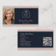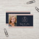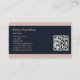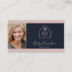 Elegante und berufliche echte Anwesen Agent Visitenkarte mit einem Foto. Modernes Realtor-Logo auf der Vorderseite mit Script-Schriftart in Rosa und Hintergrund in marineblau. QR-Code hinzufügen