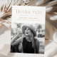 Moderne Abschluss Dankeschön-Karte mit "Danke" an der Spitze in der modernen goldenen Schrift mit einem weißen Rand an der Grenze zum Senior Foto des Absolventen. Personalisieren Sie das Foto Dankeschön-Karte, indem Sie den Namen des Absolventen, die Schule und Abschluss Jahr. Auf der Rückseite der Karte ist Platz für Ihre getippte oder handgeschriebene Nachricht vorhanden.