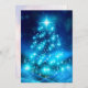 Eine Weihnachtskarte, die mit Ihrem Namen und Ihrer Botschaft auf der Rückseite personalisiert ist. Entworfen mit einem modernen elektrischen blauen Weihnachtsbaum. Das Ganze ist mit Lichtern geschmückt. Der Hintergrund ist verschwommen.