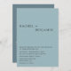 Dusty Blue, elegante und klassische Hochzeitseinladung, mit serif type Schriftart. Diese elegante Einladung ist ideal für Paare, die eine einfache und minimalistische Hochzeitseinladung suchen. Das ist auch eine doppelseitige Einladung. Die Rückseite enthält Empfang- und UAWG-Informationen, die einen QR-Code enthalten, den Sie durch einen eigenen ersetzen können.