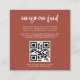 Ein moderner und trendiger Stil für Ihre Hochzeitsarbeit: eine kühne Typografie und ein elegantes Dekor aus gebrannten Ziegeln, einfach zu mischen und zu passen. Vollständig anpassbare Farben und Hintergründe. Ersetzen Sie das Bild durch Ihren eigenen QR-Code, um Ihren Gästen den Zugang zu Ihrer digitalen Wunscheinrichtung zu ermöglichen.