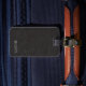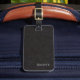 Moderner eleganter schwarzer lederner Blick-Name Gepäckanhänger