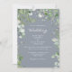Moderne Eukalyptus Foliage dufte blaue Hochzeitseinladung. Weiße Typografie. Es wurden keine Eltern aufgeführt.