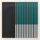 Dieses moderne Design weist große rechteckige Farbblöcke in aquamarin, schwarz und weiß auf, die aquamarinen und weißen Hintergrundbereiche sind mit schwarzen Streifen geschmückt.