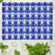 Mitte des Jahrhunderts Modernes Design von stilisierten Fischen, abwechselnd positiver und negativer Raum - Mixed Media Grafik in tiefem Kobalt und hellblau