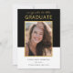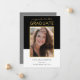 Dieses Design ist eine Ankündigung des Abschlusses mit zeitgenössischem Stil und bietet einen schwarz-weißen Blockhintergrund mit einem dünnen goldenen Rahmen, der Ihr vertikales Portrait umgibt. Eine Textvorlage in knackiger moderner Schrift ist bereit, mit dem Namen, dem Unterrichtsjahr und der Schule des Absolventen zu personalisieren. Laden Sie Ihr gewünschtes Foto anstelle des Beispiels-Fotos, das in dieser Anzeigenkarte angezeigt wird. Dieses vielseitige, geschlechtsneutrale Design funktioniert gut für jeden Absolventen von High School, Uni oder Hochschule, Technik- oder Fachhochschulen und anderen Bildungseinrichtungen.