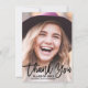 Schicken Sie einen minimalistischen Foto Abschluss Dankeschön an Ihre Familie und Freunde für ihre großzügige Unterstützung. Dieses einfache und schicke Design zeigt Ihr Bild auf der Vorderseite mit einem Overlay von schwarzer Schrift Typografie, die "Danke" mit Ihrem Namen und Jahr zu personalisieren. Die Rückseite der Karte hat ein Dankeschön-Nachricht mit Signatur, um den Akzent durch eine Graduierungshülse anzupassen. Glückwünsche auf deinem Abschluss! Entworfen von Susan Coffey.
