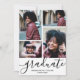 Fügen Sie Ihre Lieblings-4-Fotos an die Vorderseite und 1 an die Rückseite dieser Abschlussfeier Einladungen mit dem Absolvent, Ihrem Schulnamen und Klasse in schicken Schriften.) Fügen Sie Ihre Party-Details auf der Rückseite hinzu. Mehr Designs und Farben in unserem Shop sowie Ankündigungen und Postkarten.