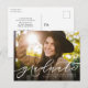 Feiern Sie Ihren Abschluss und laden Sie mit dieser horizontalen Ankündigung und Einladung Postkarte ein, die einen modernen und trendigen Kalligrafieschrift-Absolventen vorn und einen individuell anpassbaren Rücken für Ihre Party-Details bietet.