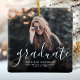 Feiern Sie den Absolventen mit diesem modernen maßgeschneiderten Foto-Abschluss-Ornament, mit dem Wort "Absolvent" in der weißen Handschrift, mit der Schule und Jahr des Abschlusses unten in weißen Sans Serif-Schriftart. Ein Überlagern mit schwarzem Farbverlauf stellt sicher, dass der weiße Text Pop. Ideal für Gymnasiasten oder Uni-Abschluss.