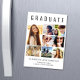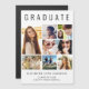 Eleganter magnetischer Keepake Abschluss Ankündigung, den Absolvent mit "GRADUATE" über die Spitze in großen Typografie, eine 7-Foto-Collage und seinen Namen, Klassenjahr und Schule in der modernen Typografie zu feiern.
