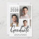 Moderne Abschluss-Ankündigung mit einer 3-Foto-Collage und "Graduate" in einer kühlen zeitgenössischen Schrift. Fügen Sie den Namen des Absolventen, das Unterrichtsjahr und die Schule in einfacher Schrift hinzu. Fügen Sie auf der Rückseite ein zusätzliches Foto und Ihre personalisierte Nachricht hinzu.