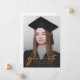 Gold | Moderne Graduate Script Foto Abschluss Einladung. Die elegante, einfache und moderne Ankündigungskarte des Abschlusses besticht durch eine stilvolle Typografie, die den Goldgräber trägt. Es enthält zwei Fotos und Text zur Personalisierung des Namens, des Klassenjahres und der Ankündigungsnachricht.
