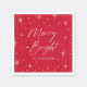 Moderne Papierservietten mit "Merry and Bright", die in einem handgeschriebenen Skript dargestellt sind, umgeben von weißen Sternen und einem roten Hintergrund. Personalisieren Sie die fröhlichen und hellen Servietten, indem Sie unten Ihren Familiennamen oder benutzerdefinierten Text hinzufügen. Die festlichen Servietten eignen sich hervorragend für Feiern, Weihnachtsessen und andere Feiertagsveranstaltungen.