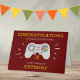Senden Sie einen Geburtstagsgruß mit dieser modischen Grußkarte für Kontrolle-Videospiel. Ändern Sie einfach Alter und Namen mit dem Feld "Personalisieren Sie diese Vorlage". Das Karteninnere ist leer, damit Sie eine persönliche Nachricht schreiben können, oder klicken Sie auf Bearbeiten, um einen Text oder ein Foto hinzuzufügen.