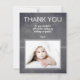 Niedlicher, moderner Geburtstag danke Ihnen Karte, um Ihren Gästen zu danken. Einfach Dankeschön Karte für Kinder - Mädchen und Junge, vor allem für den 1. und 2. Geburtstag. Personalisieren Sie die Karte mit Ihrem Foto und Namen. Sie können auch den Dankeschön Text ändern und schreiben Sie Ihre eigenen. Der Text ist in trendiger und moderner weißer Farbe. Der Hintergrund ist die trendige graue Tafel.