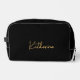 Ein modernes Dopp-Kit für individuelle Name-Kalligrafie in Schwarz und Gold ist stilvoll. Ideal für die Organisation von Make-up-Produkten oder Alltagsessenziellen.