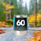 Feiern Sie die großen sechs oh im Stil mit diesem Edelstahl-Edelstahl-Edelstahl-Edelwein-Tumbler, der auffallend schwarz, weiß und eisblau blockiert und handgeschriebenes Set auf glitzerndem Eisblau, schwarz und rauchgrau Hintergründen aufweist. Umkehrung zeigt identisches Design. Design © W.H. Sim. Weitere Informationen unter zazzle.com/expressionsoccasions