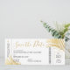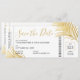 Moderner Gold Palm Leaf Boarding Pass Save the Dat Ankündigung