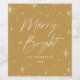 Moderne Ferienweinetiketten mit "Merry and Bright" in weißem, handgeschriebenem Schriftzeichen umrahmt von einer Sternengrenze mit goldenem Hintergrund. Personalisieren Sie die fröhlichen und hellen Weinetiketten, indem Sie Ihren Familiennamen und das unten stehende Jahr hinzufügen.