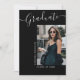 Diese moderne, elegante und dennoch einfache Abschluss-Anzeigenkarte besticht durch moderne Texte mit eleganter Kalligraphie. Das Foto der Absolventen hebt die Kartenvorderseite hervor, während auf der Kartenrückseite personalisierte Textstellen für Informationen über den Abschluss und die künftige Reise angeboten werden. Weiße Schrift auf Regal schwarz oder einfach anpassen Sie den Hintergrund zu einer Farbe Ihrer Wahl. Um mehr zu sehen, besuchen Sie meinen Shop hier unter "www.Zazzle.com/LakeViewCardCo". Danke