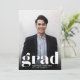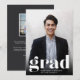 Einfache und moderne Ankündigung von Foto Abschluss mit einem minimalistischen Gefühl zeigt "grad" am unteren Ende, mit dem Namen und Schule Ihres Absolventen unter, und ihr Abschluss Jahr arbeitete in das Design. Ideal für Abschluss mit High School, Uni oder fortgeschrittenem Abschluss. Fügen Sie der Rückseite eine persönliche Nachricht und ein zusätzliches Foto hinzu.