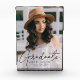 Feiern Sie die Leistung Ihres Absolventen mit einem maßgeschneiderten Abschluss-Foto-Sake. Im Foto-Block befindet sich das vertikale Foto des Absolventen mit einem "Absolvent" in einem trendigen schwarzen Skript. Personalisieren Sie den modernen Abschluss-Foto-Block, indem Sie den Namen, die Schule und den Abschluss Jahr.