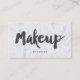 Eine moderne, berufliche stilvolle Make-upkünstler-Geschäftskarte mit moderner Handbeschriftungsart-Bürstentypographie im Grau auf einem trendy und eleganten weißen Marmorhintergrund.