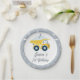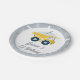 Moderner Graugelber Sprungwagen 1. Geburtstag Pappteller