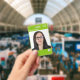 Modernes und berufliches, benutzerdefiniertes, grünes Computer-ID-Abzeichen. Geben Sie den Namen, das Foto, das Logo, die Adresse, die Telefonnummer, die Jahre, die Website und den Strichcode ein.