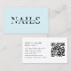 Moderne, hellblaue QR Code Business Card - erhältlich in 18 Farben. Dieses elegante, berufliche Design mit Visitenkarten zeichnet sich durch fett formatierte Typografie und einen individuellen QR-Code aus, der sich perfekt für Digital-First-Unternehmer von heute eignet. Ideal für Beauty-Profis, Nageltechniker, Lash-Künstler, Friseuristen, Make-up-Künstler und Wellness-Experten. Passen Sie Ihren Namen, Titel, Kontaktdaten und QR-Code einfach an, um auf Ihre Website, Buchungsseite oder Ihr Instagram-Profil zu verlinken. Dieses auf hochwertigem Karton gedruckte Design ist in 18 atemberaubenden Farbvarianten erhältlich - darunter Schwarz, Rosa, Weiß, Beige und vieles mehr -, die Ihren Marken- oder Salonstil entsprechen. Stell dich heraus und bleibe mit einer Karte verbunden, die beide