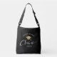Moderne individuelle Name Abschluss Crossbody-Tasche mit trendiger Skriptkalligrafie Lesen der CLASS unter einem gedruckten Gold Grade Kappe. Personalisieren Sie Ihren Namen in einem Bogen und das Jahr Ihres Abschlusses.