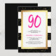 Diese glamourösen, modernen Einladungen zum 90. Geburtstag sind mit trendigen schwarz-weißen Streifen mit Imitaten goldfarbenen Konfetti und einem passenden Rahmen ausgestattet, und die rosafarbene Typografie an der Spitze mit ihrem Alter.
