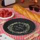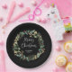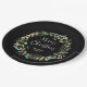 Diese schlichten und stilvollen Urlaubspapier-Teller verfügen über einen atemberaubenden Aquarellkranz mit goldenen Blätter in Grün und Imitaten, roten Heiligenbeeren und einer weißen, modernen Schriftzeichen-Typografie, in der auf dunklem schwarzen Hintergrund "Frohe Weihnachten" steht.