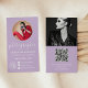 Moderne Weiß auf pastellfarbenen Lavendel lila Foto qr Code Logo Fotograf Visitenkarte. Fügen Sie 2 Fotos, Ihr Logo, Social Media und qr Code hinzu, um Ihre Preisliste, Termin, Portfolio und mehr anzuzeigen! Einfach weiß auf dem Lavendel mit kreisförmiger Foto-Maske und eleganter moderner Schriftzeichen-Typografie,