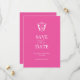Mit diesen modernen Hochzeitsfeiern können Sie Ihren besonderen Tag erleben und dabei das Datum der Einladungen für die Braut und den Bräutigam der Moderne sparen. Die Einladungen mit einem fett-fuchsienrosa Hintergrund und einem stilvollen Monogramm-Wappen verbinden schlichte Eleganz ohne Foto mit einem zeitgenössischen Flair. Der Mix aus moderner Schrift und klassischer Typografie fügt Ihrer Ankündigung zur Verlobung eine Touch von Eleganz hinzu. Personalisieren Sie Ihre Wunschfelder mit Ihrem Namen, Ihrem Hochzeitstag und Ihren Themenfarben. Die Rückseite enthält einen individuellen QR-Code - fügen Sie einfach Ihre Hochzeitswebsite hinzu, und es wird automatisch aktualisiert, sodass diese perfekt für eine QR-Code Hochzeit oder virtuelle Hochzeitseinladungen. Diese auf hochwertigem Kartenmaterial gedruckten Einladungen mit Perlschimmer für ein luxuriöses Ambiente sind ideal für ein zeitgenössisches Thema. Mix und passend zu anderen Designs aus der passenden Schreibwarensuite, um einen zusammenhängenden Look für Ihren großen Tag zu schaffen. Weitere Designs finden Sie unter www.zazzle.com/dotellabelle. Originelles Design von Victoria Grigaliunas of Do Tell A Belle.