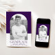 Mit dieser einfachen und stilvollen Abschluss-Ankündigung, die ihr Foto in einem eleganten Bogen-Rahmen präsentiert, kündigen Sie die besondere Leistung Ihres Absolventen an. Der lila und weiße Blockhintergrund verleiht eine moderne Touch, während "Graduate" in fett lila Schriftzeichen für einen auffallenden Kontrast dargestellt wird. Personalisieren Sie diese Ankündigung des Abschlusses, indem Sie den Namen, die Schule und den Abschluss des Absolventen hinzufügen, und machen Sie es zu einem wahrhaft einzigartigen Sake für Freunde und Familie zu schätzen. Dieses elegante Design ist perfekt für Absolventen der Highschool und der Uni geeignet und zeichnet sich durch seine herausragende Qualität aus.